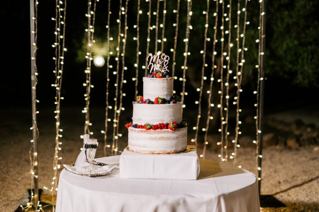 Il taglio della torta conclude la serata sotto le stelle, tra sorrisi, abbracci, un finale romantico, che resta nel cuore.